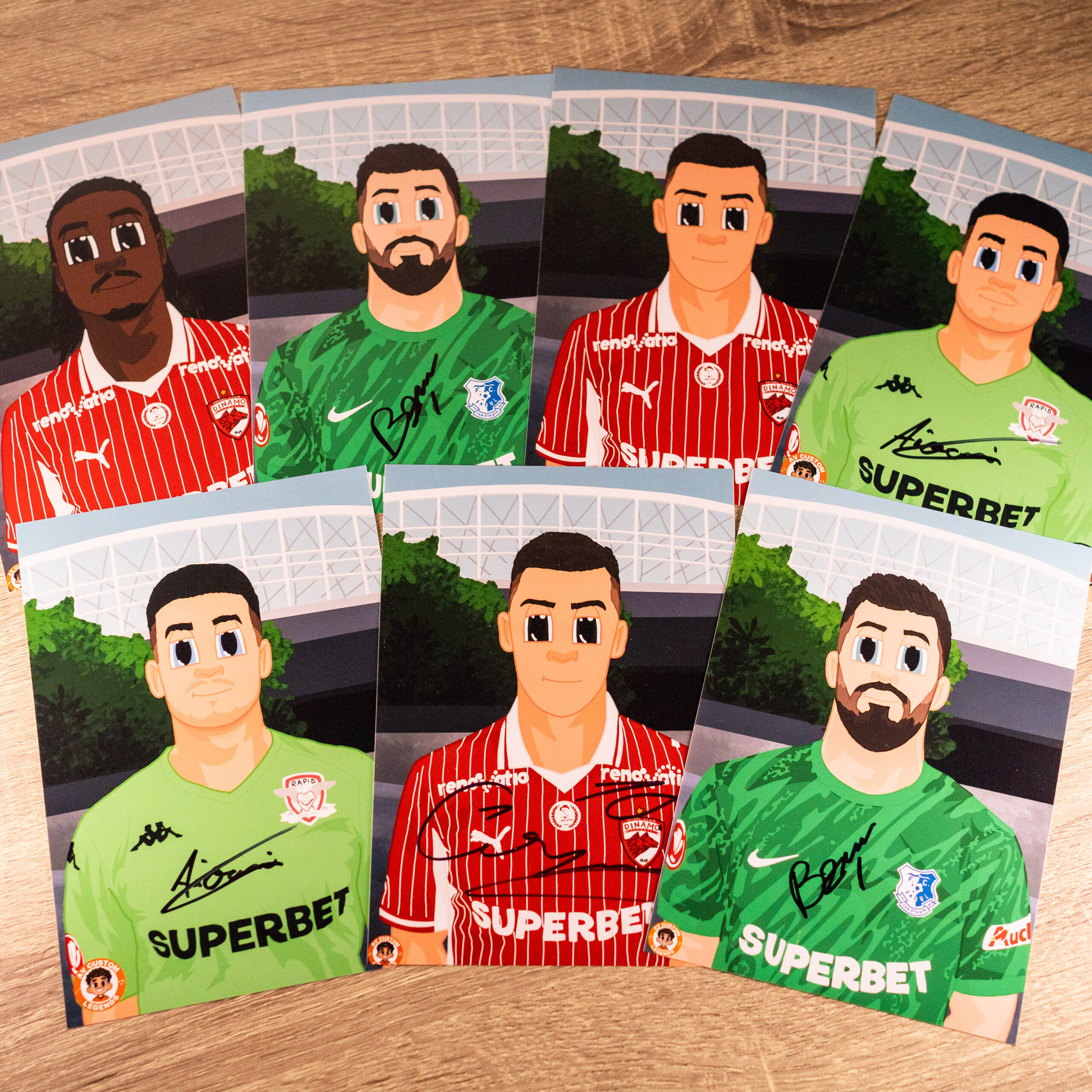 1 x Poster EDITIE LIMITATA 13 x 18 cm (semnat/sau nu) de unul dintre prietenii nostri fotbalisti Marian Aioani, Catalin Cirjan, Constantin Budescu, Eric de Oliveira, Alexandru Buzbuchi, Mihai Popescu, Virgil Ghiță, Daniel Florea si Laura Rus – un fotbalist, un moment, o poveste